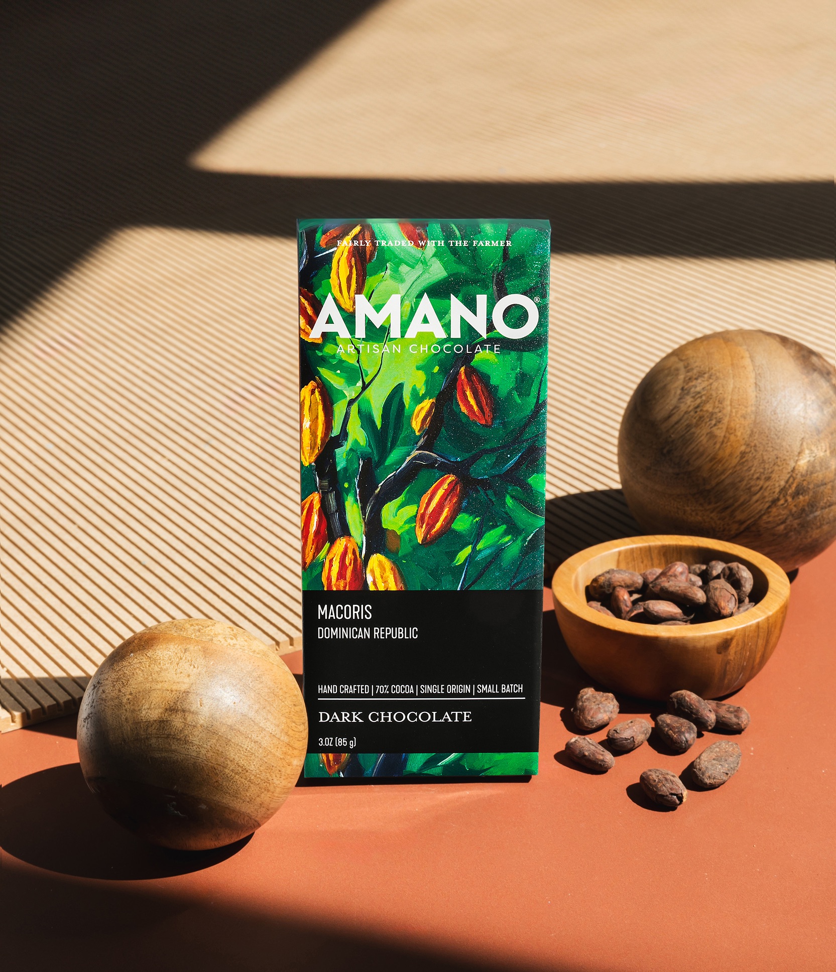 Amano sources from premium cacao-growing regions such as Venezuela, Ecuador, and Madagascar.